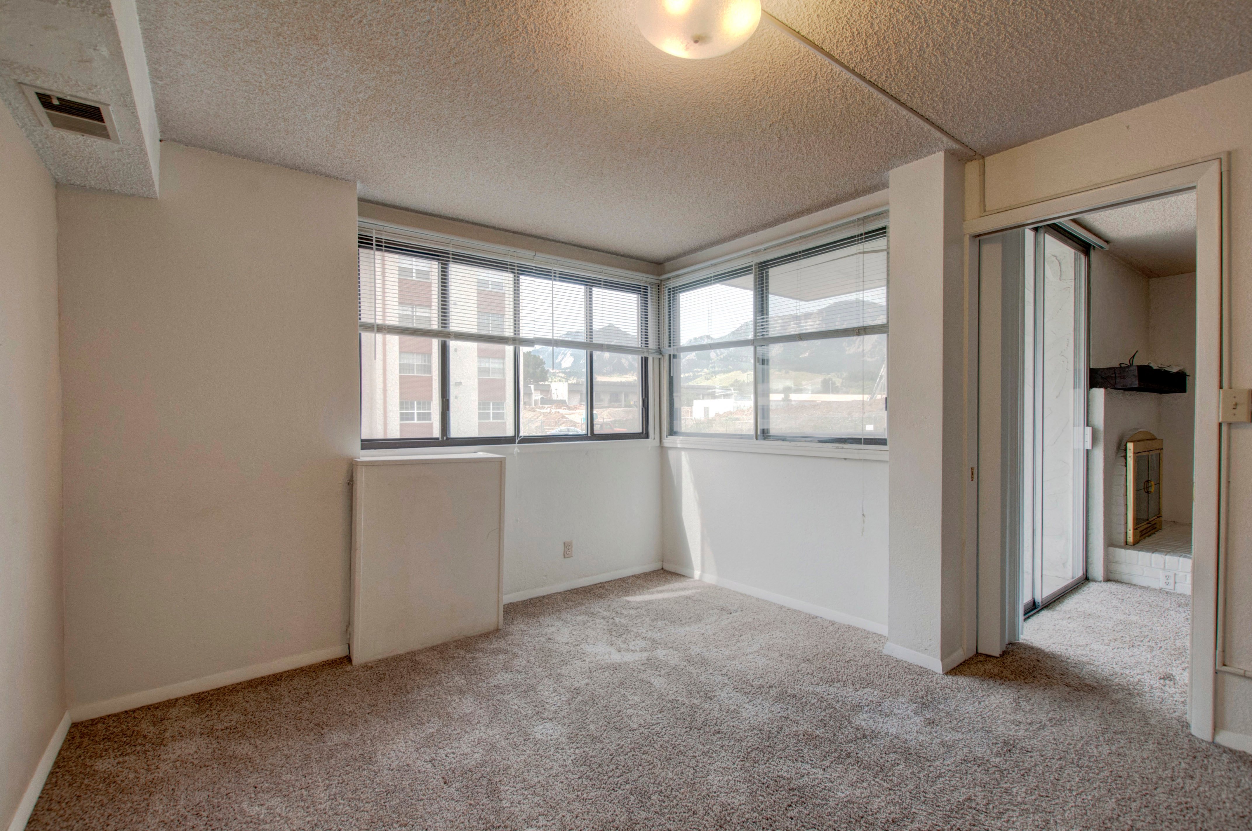 Each apartment features an open layout with large bedrooms, closet space, and some units even feature private balconies—many with stunning views of the Flatirons.