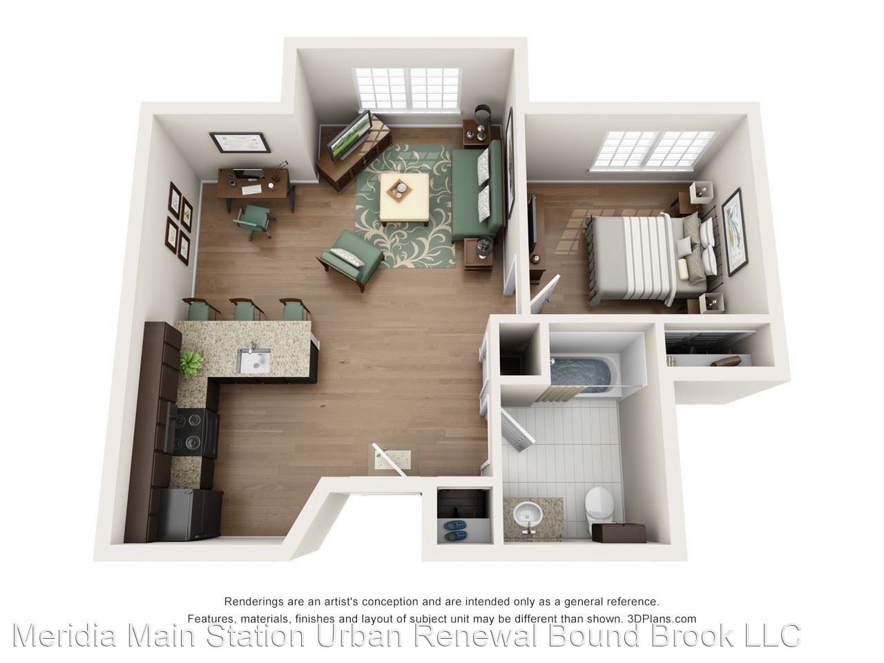 - Your daily commute from Meridia Main Station is one you don’t have to stress about. The Bound Brook Station is only 0.2 miles away for your living convenience in between I-287 and U.S. 22. Known for its many graduate programs, Rutgers University is seven miles away so you can easily explore educational pursuits and a beautiful campus. Home of the Scarlet Knights, cheer on Rutgers’ football team at HighPoint Stadium across from Johnson Park. Apartments In Bound Brook NJ At Meridia Main Station, live the life of luxury in any one of our one or two bedroom apartment homes. With up to 851 square feet, enjoy spacious living right in the city. At the corner of Bound Brook, Green Brook and Raritan River, enjoy breathtaking views through expansive windows and your very own eye-catching balcony. Feel right at home the moment you walk on rich hardwood flooring throughout with beautiful modern detail. Premium kitchen packages feature generous granite countertops and superior appliances for your living convenience.