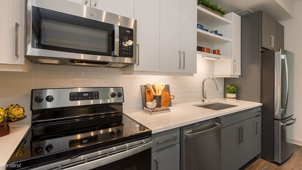 Stainless steel GE appliances with built-in microwaves