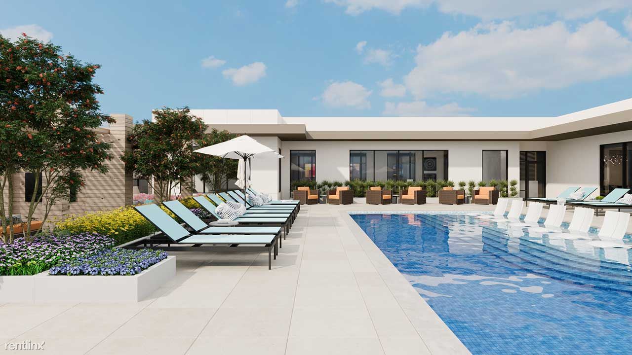 Seventh-floor rooftop terrace with lavish amenity deck, saltwater pool, outdoor kitchen and skyline views of Austin